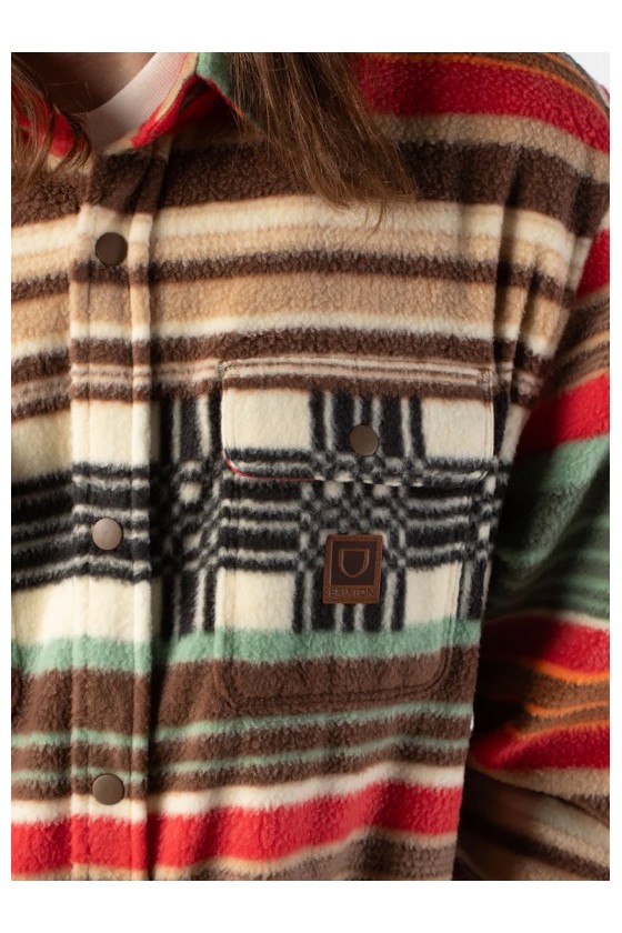Camisa Brixton modelo artic, de alto gramaje, polar, decorada, con cierre frontal de botón, bolsilos delanteros, logotipo, construida con tejido stretch para una ligera elasticidad, cómoda, abrigada y con mucho rollo.