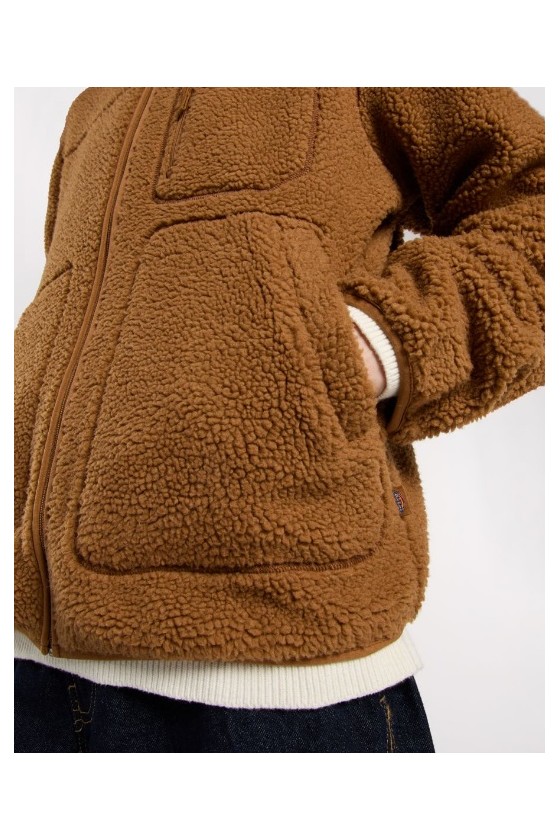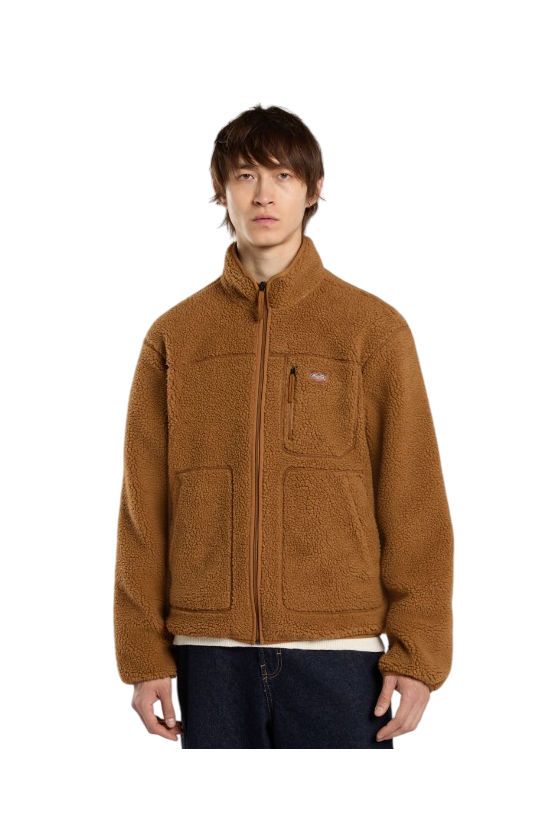 Chaqueta forro polar Dickies Mount Hope de corte holgado, en tono marrón, forro polar sherpa, con cremallera frontal completa, cuello alto, bolsillo en pecho con etiqueta dickies y doble bolsillo frontal para resguardar las manos del frío. Tejido antiarrugas y antiencogimiento.
