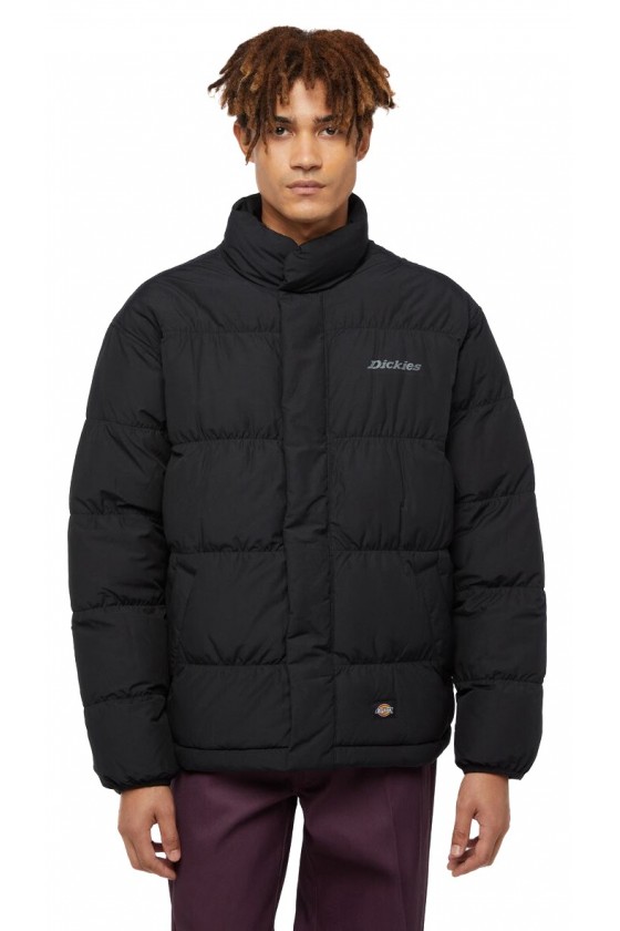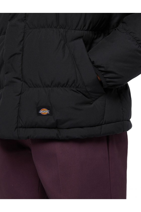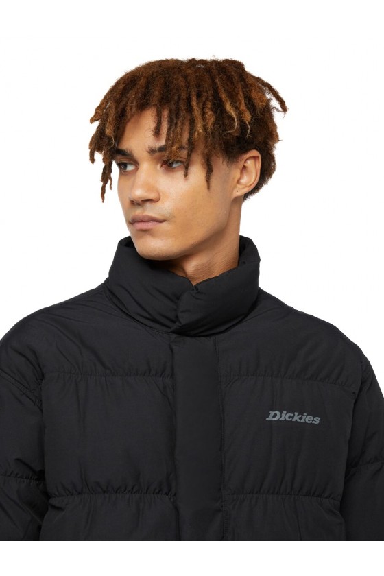 Abrigo acolchado de Dickies, modelo scobey en color negro, un abrigo grueso, super abrigado, repelente al agua gracias a su material DWR. Perteneciente a la nueva temporada invierno 2024 de Dickies.