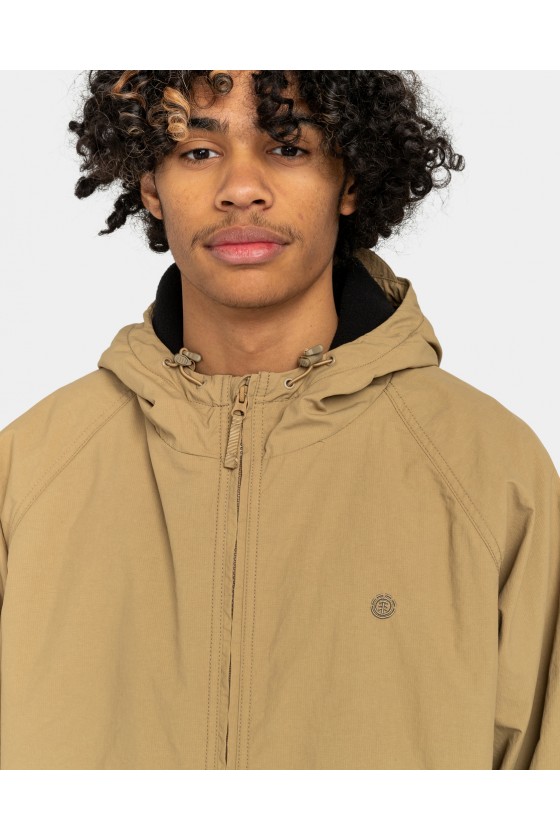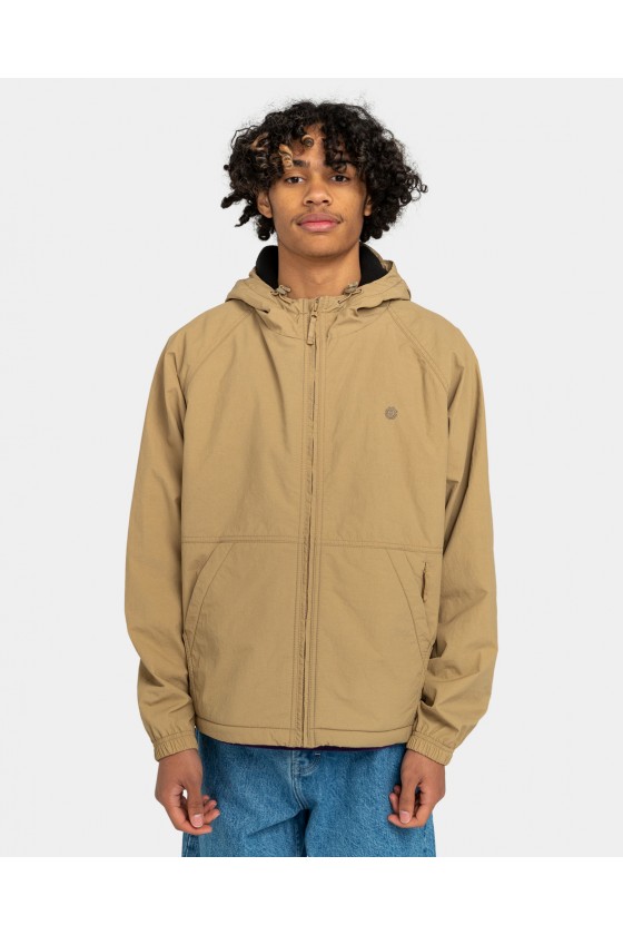 Abrigo Element Skateboards en color Khaki, con bolsillos delanteros con forro polar, capucha ajustable, cintura ajustable y logotipo bordado de element en pecho. Abrigo repelente al agua con forro polar interior al completo para tus días más fríos!