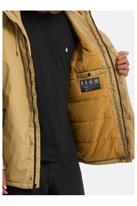 Abrigo grueso Volcom, modelo stoke stone, un abrigo grueso, super abrigado, repelente al agua (10k). Perteneciente a la nueva temporada invierno 2025 de Volcom. Color Ermine (marrón claro).