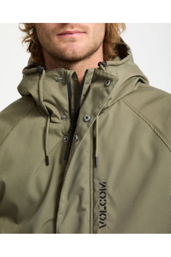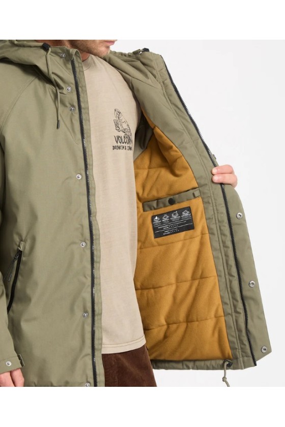 Abrigo grueso Volcom, modelo stoke stone, un abrigo grueso, super abrigado, repelente al agua (10k). Perteneciente a la nueva temporada invierno 2025 de Volcom. Color Wintermoss (tono verdoso claro).