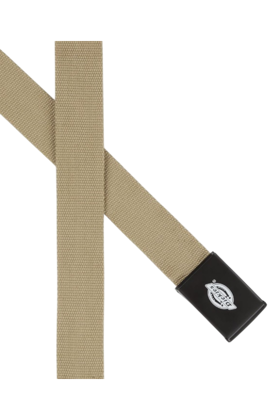 Cinturón en color khaki de Dickies, modelo orcutt ajustable a cintura con hebilla metálica color negra con logotipo dickies en Blanco. Colección Dickies nueva temporada en Grado 90 Zaragoza.