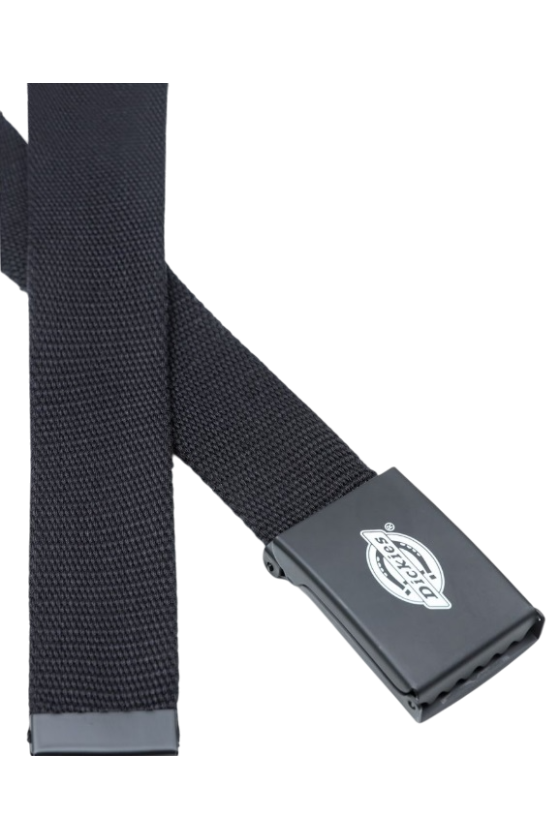 Cinturón en color negro (black) de Dickies, ajustable a cintura con hebilla metálica con logotipo dickies en Blanco.