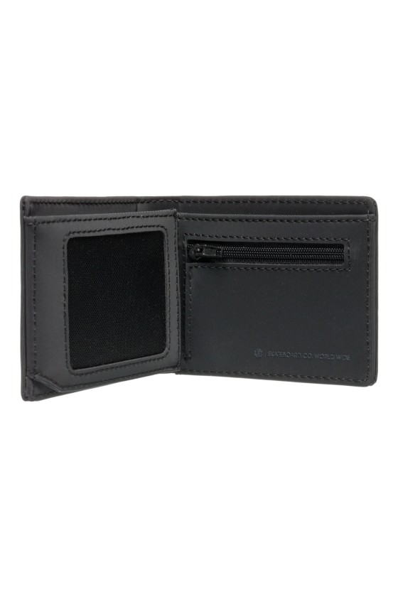 Cartera Element modelo icon mini wallet fabricada en Polivinilo 100%, color negra (flint black). Cartera de tamaño reducido pero en la que cabe todo! Hasta monedero con cremallera en su interior.