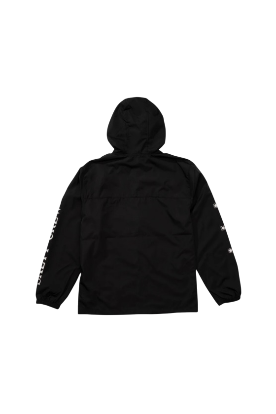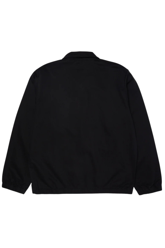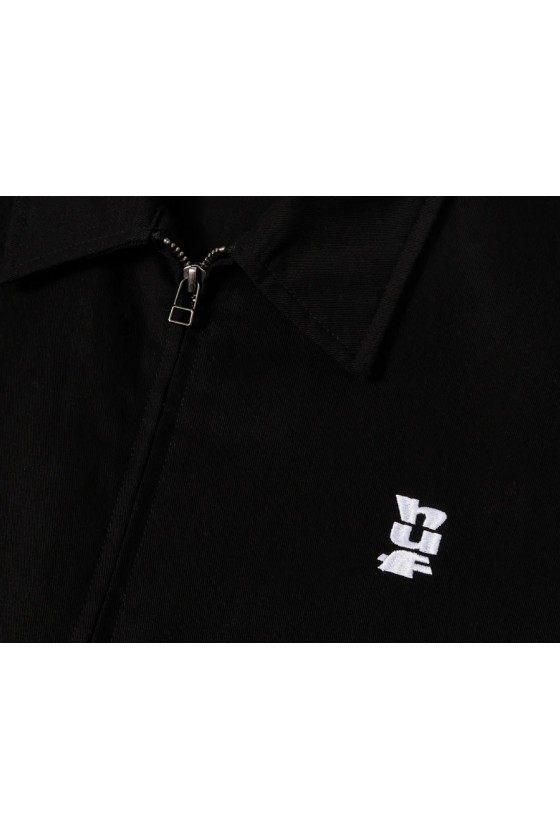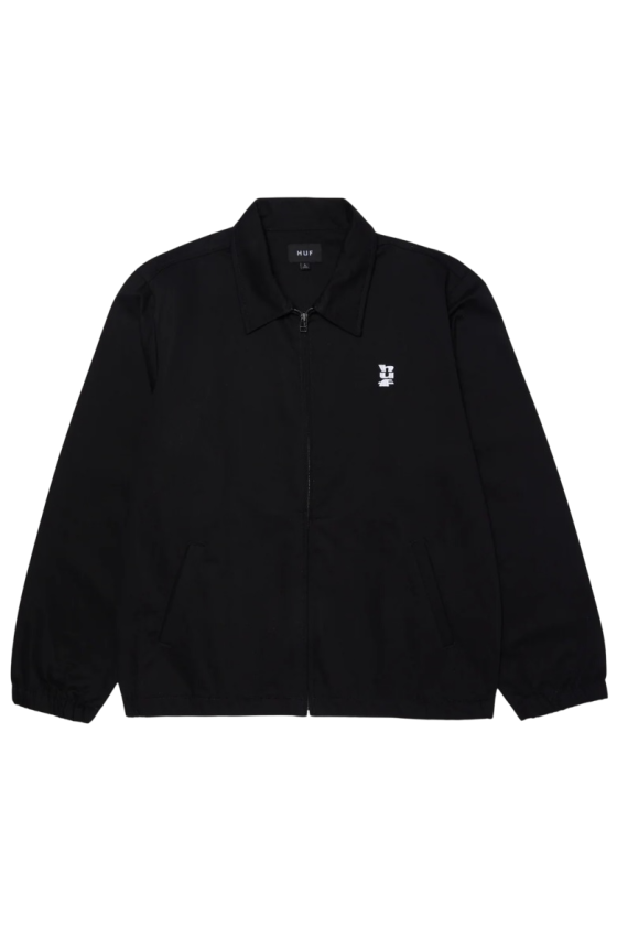 Chaqueta Huf al mas puro estilo coach jacket. En color negra. Viene con bolsillos delanteros, cremallera completa delantera en aluminio, logotipo bordado Huf en color blanco y puños con cintura con goma. Una chaqueta con un corte muy limpio, fabricada en algodón 100%.