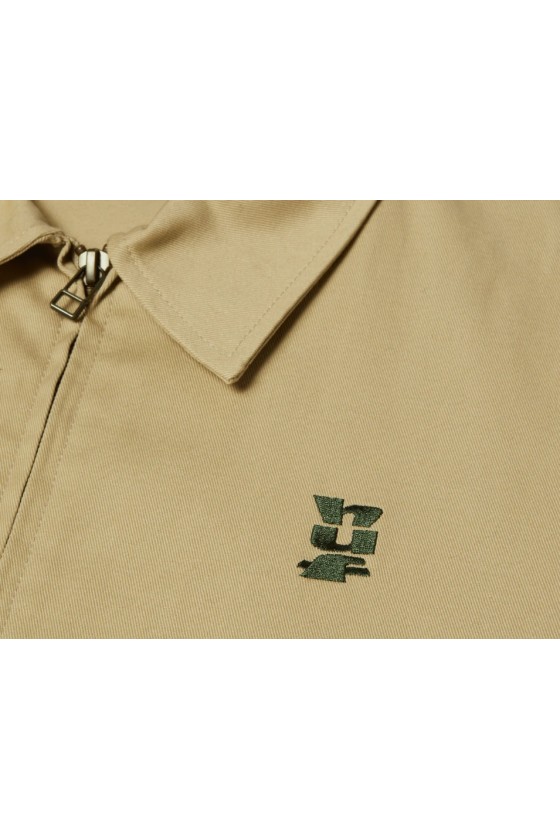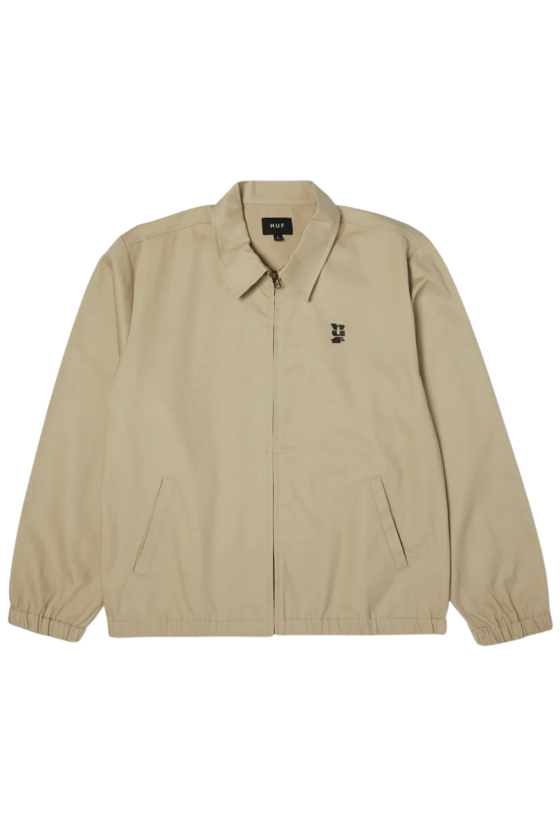 Chaqueta Huf al mas puro estilo coach jacket. En color sand (arena). Viene con bolsillos delanteros, cremallera completa delantera en aluminio, logotipo bordado Huf en color verde oscuro y puños con cintura con goma. Una chaqueta con un corte muy limpio, fabricada en algodón 100%.