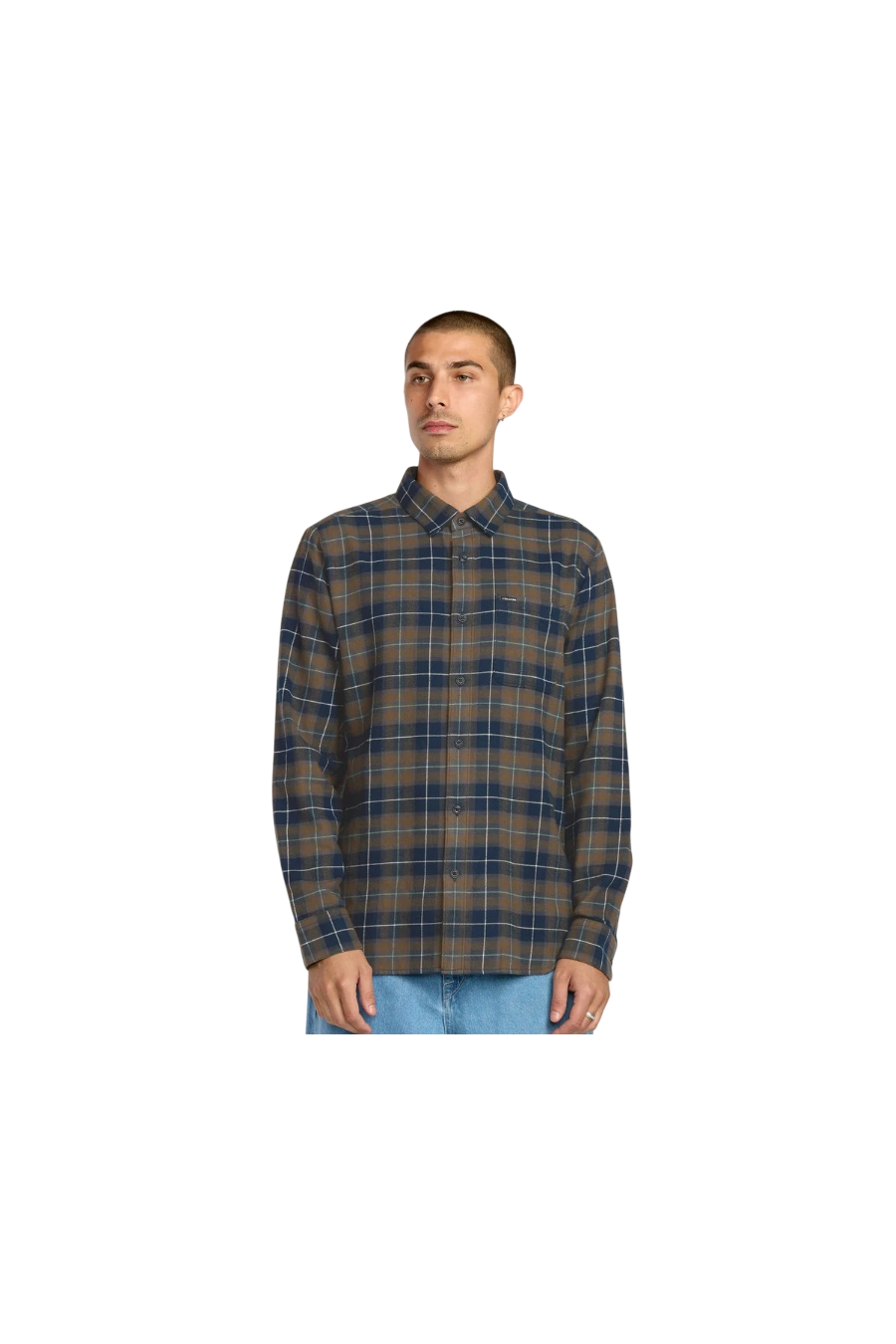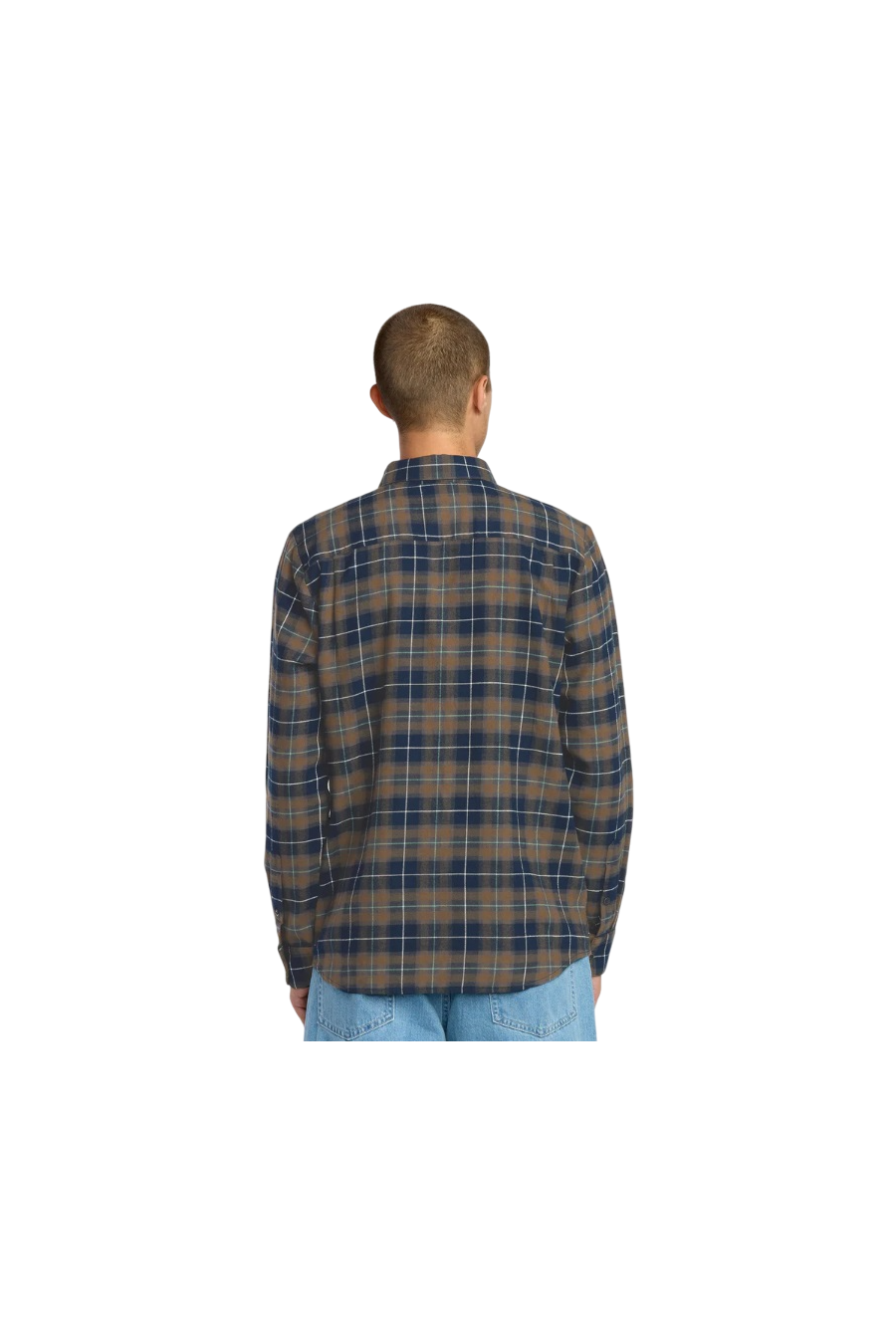 Camisa de invierno SantaCruz, en tono marrón a cuadros, color check brown, camisa suave de alto gramaje con cierre frontal mediante botones, con bolsillos delanteros en parte frontal. Ideal para llevar con una camiseta debajo a juego en tus días de invierno. La nueva colección Santa Cruz Skateboards de otoño invierno 2025 ya esta lista en grado 90 Zaragoza.