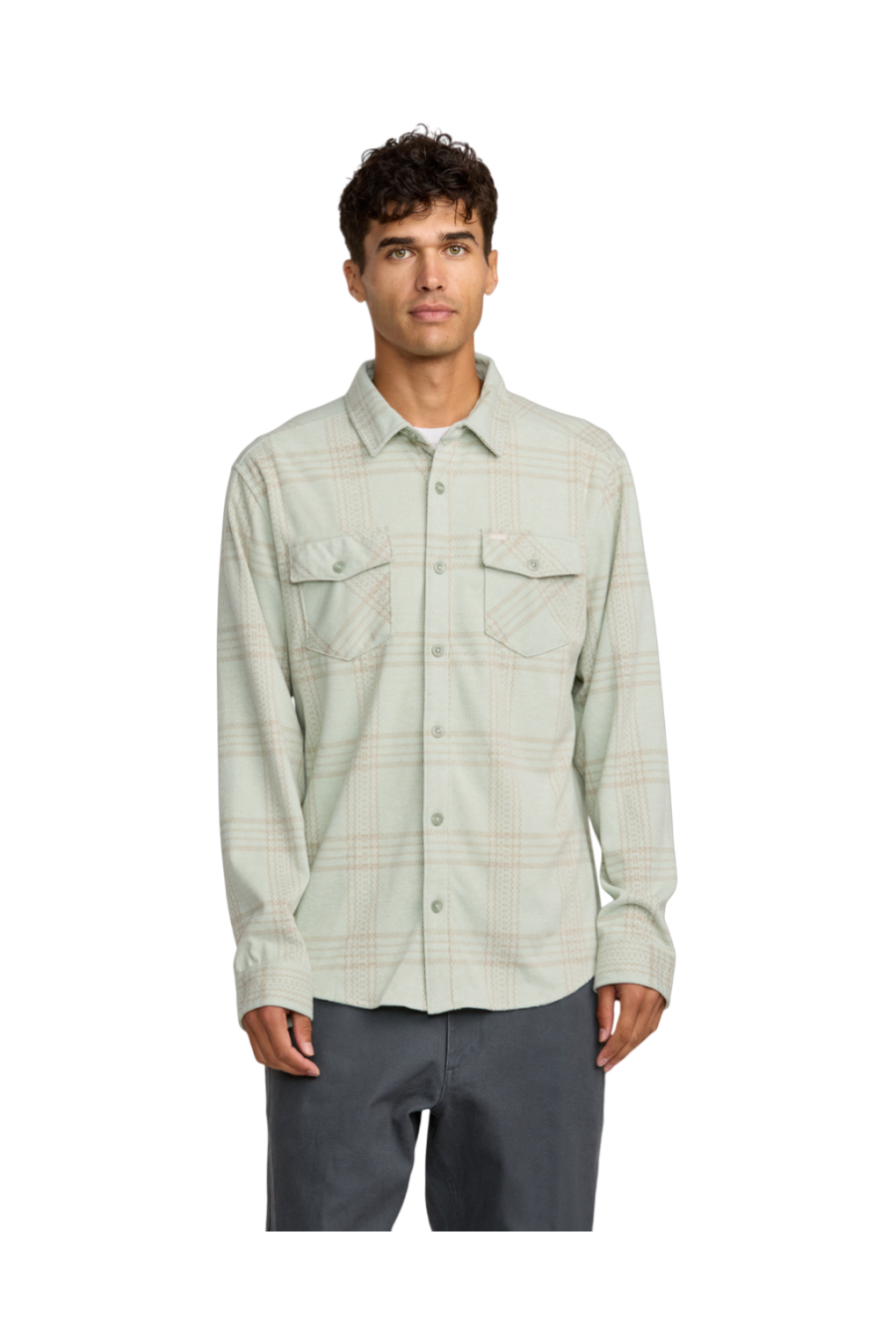 Camisa de invierno Rvca, con algo de elásticidad, comodísima, en tonalidad verde claro (Light Olive) con decoracion a cuadros invernales, cierre mediante botones delantero,esta camisa de invierno viene con bolsillos delanteros en pecho con cierre de botón. Es perfecta para llevar a juego con una buen camiseta en su interior! La nueva colección de camisas Rvca de otoño invierno 2025 ya esta lista un año más en grado 90 Zaragoza.