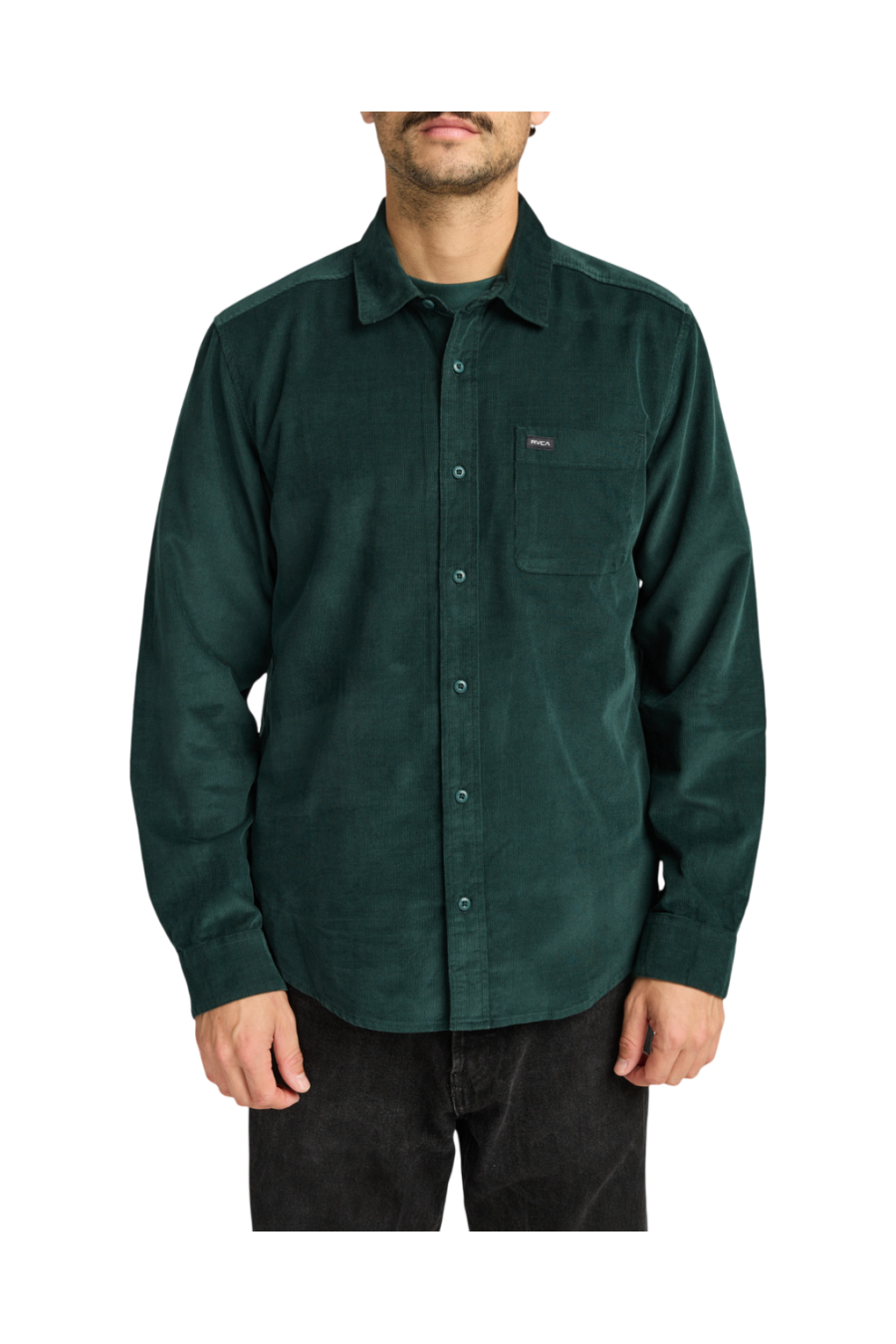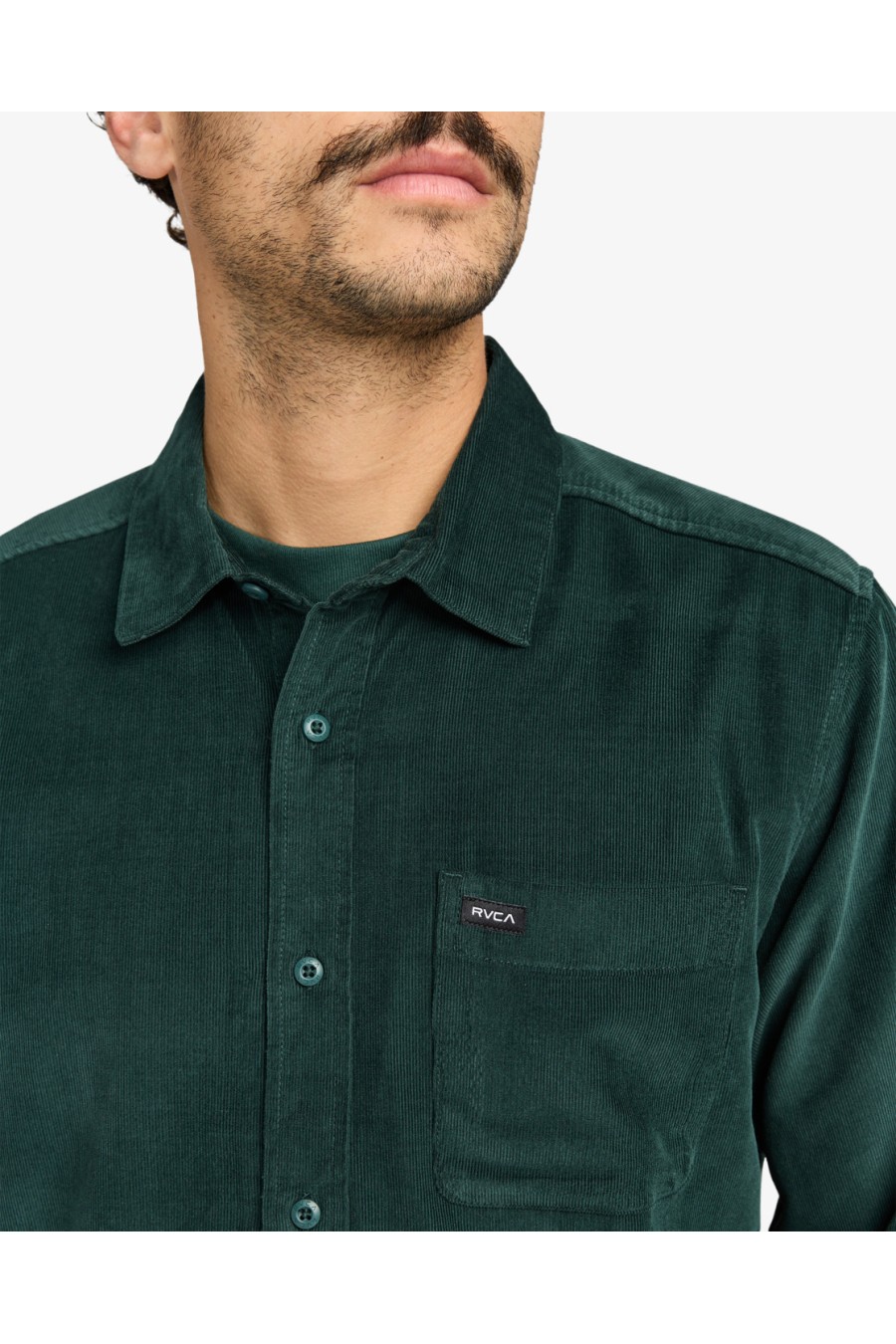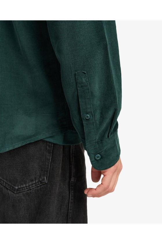 Camisa de invierno Rvca, en tonalidad verde oscuro precioso (Hunter Green) corduroy, cierre mediante botones delanteros,esta camisa de invierno viene con bolsillos delantero en pecho con etiqueta de la marca. Tejido de algodón estilo pana, cuello clásico y bajo acabado en curva. La nueva colección de camisas Rvca de otoño invierno 2025 ya esta lista un año más en grado 90 Zaragoza.