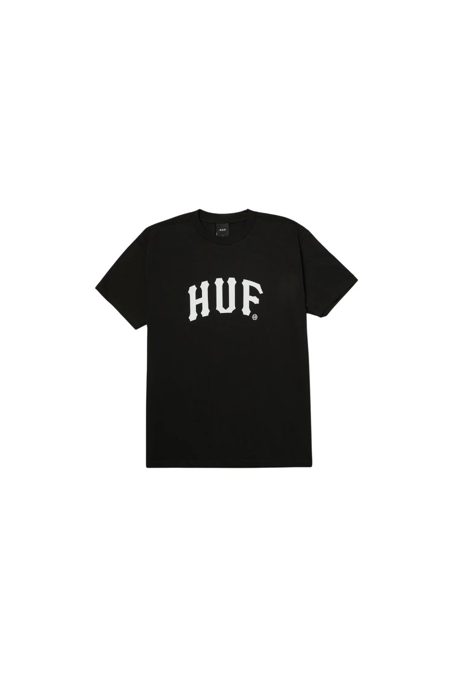 Camiseta de Manga Corta Huf Worldwide en color negra, con logotipo delantero en color blanco, camiseta con cuello redondo fabricada en 100% algodón. Nueva Temporada 2025. Grado 90