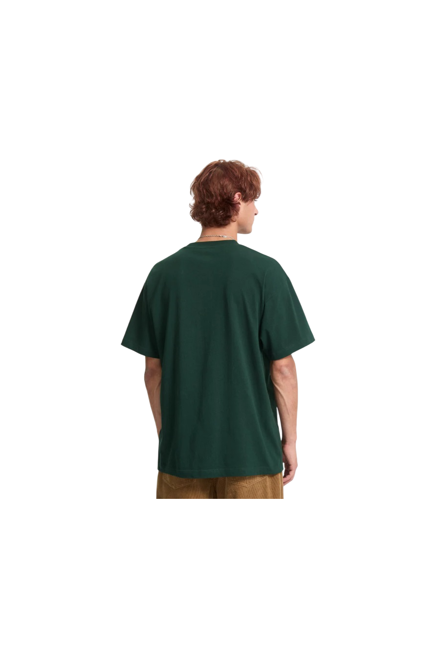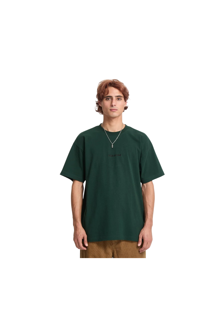 Camiseta de manga corta Volcom Stone en color scarab (verde oscuro), con logotipo en parte delantera bordado en color negro. Camiseta de corte holgado, cuello redondo y 100% algodón orgánico. Nueva Colección Volcom Otoño Invierno 2025 en Grado 90 Zaragoza.