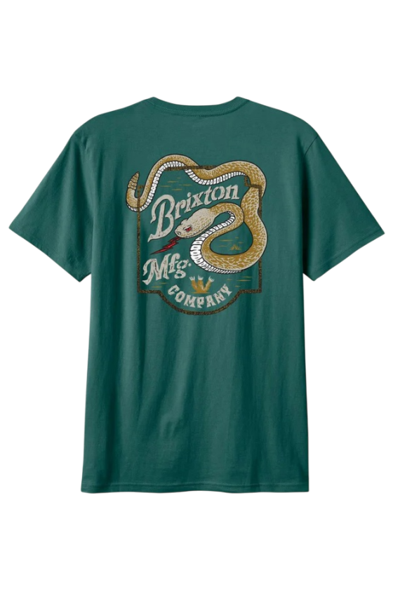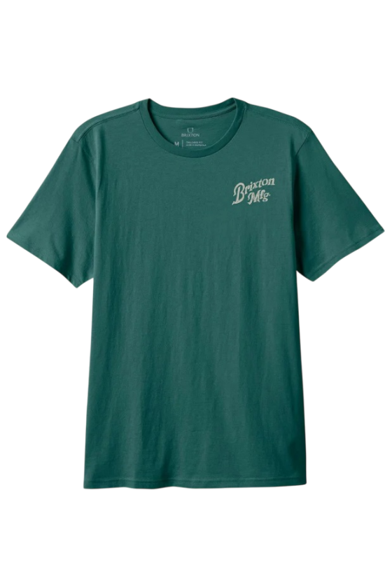Camiseta Brixton de manga corta, modelo township, con corte tailored en color night sage, camiseta cómoda fabricada con algodón extrasuave y transpirable 100% con print en pecho y espalda.