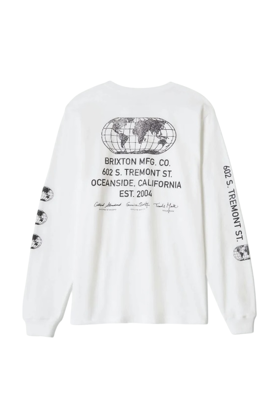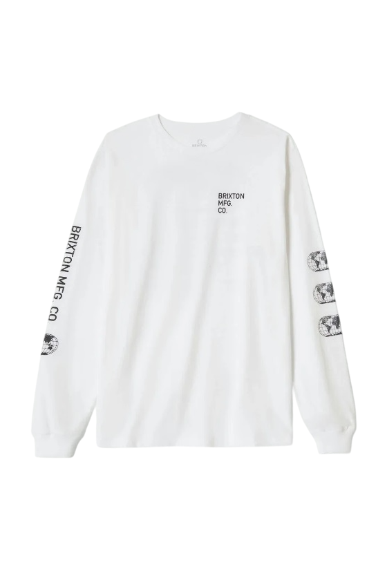 Camiseta Brixton de manga corta, modelo Union, con corte standard en color blanca, camiseta cómoda de manga larga fabricada con algodón transpirable 100% con print en pecho, mangas y espalda en color negro.