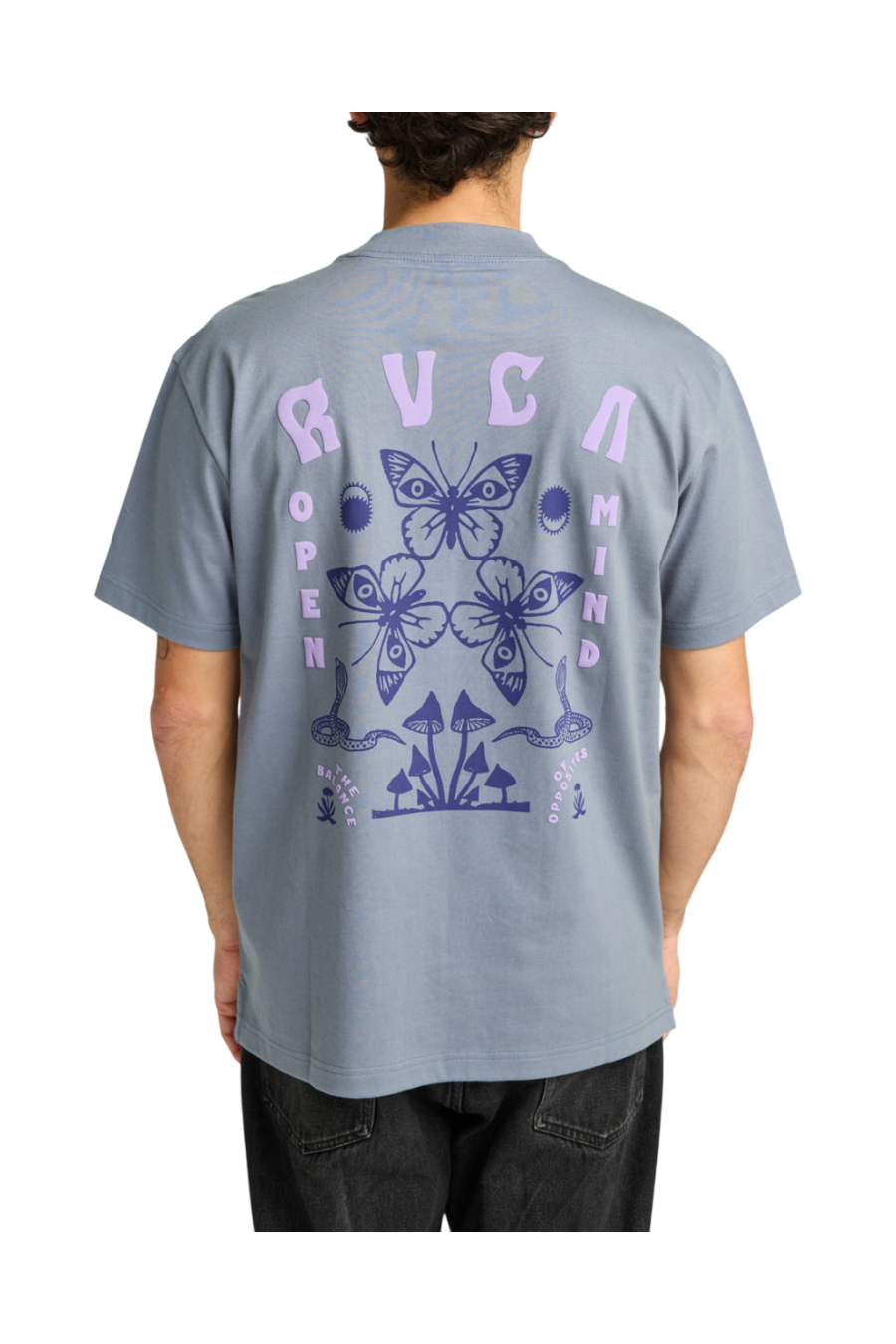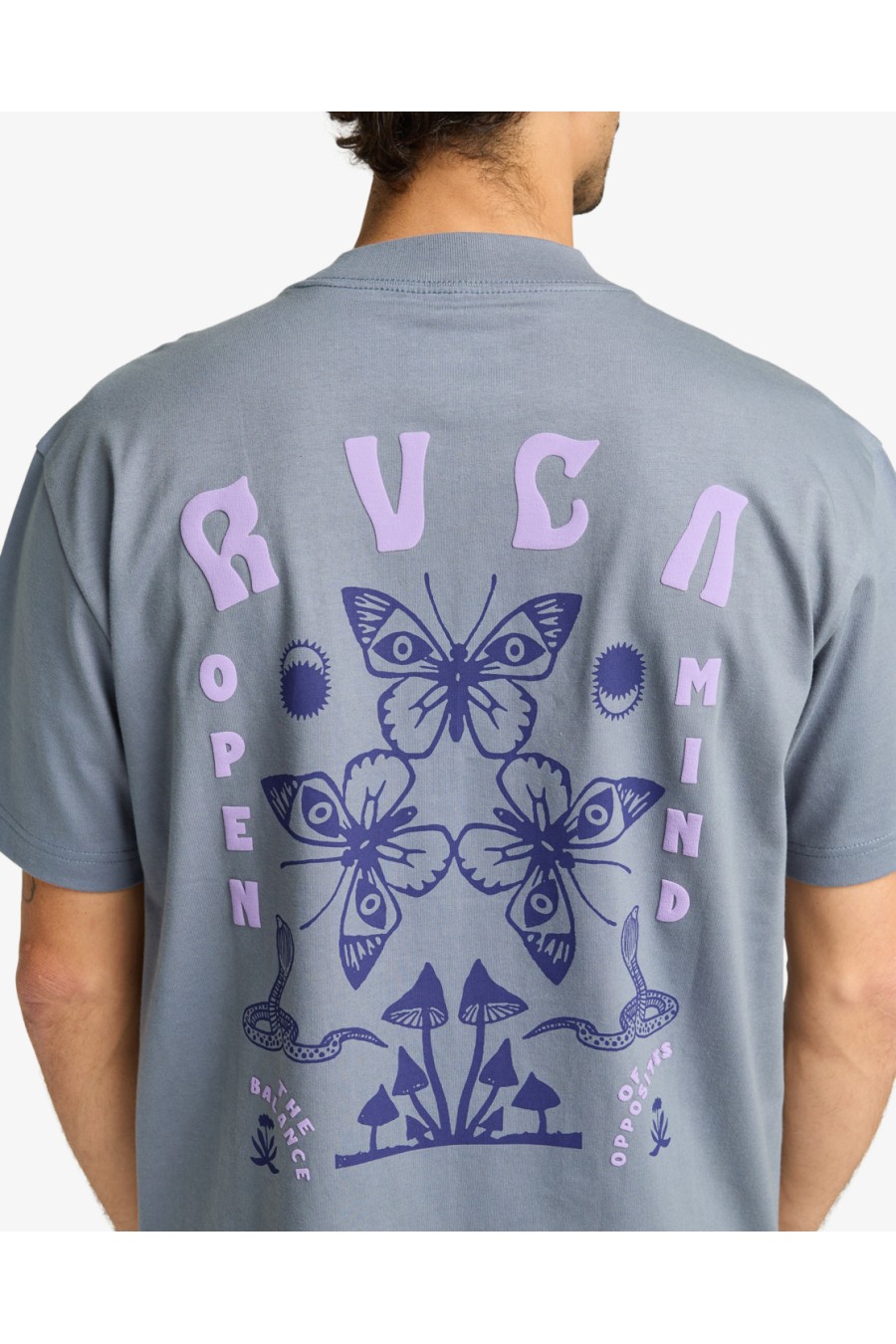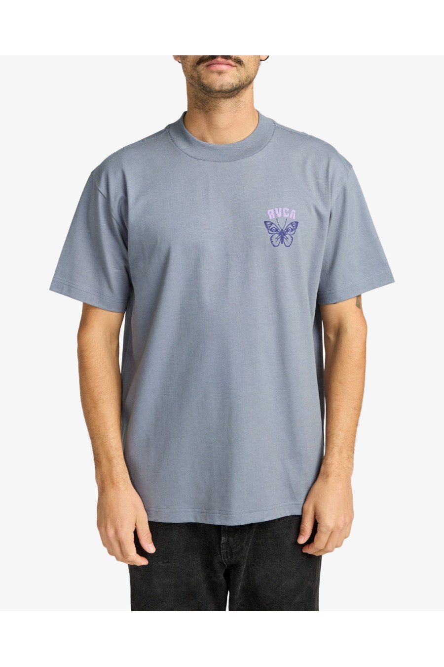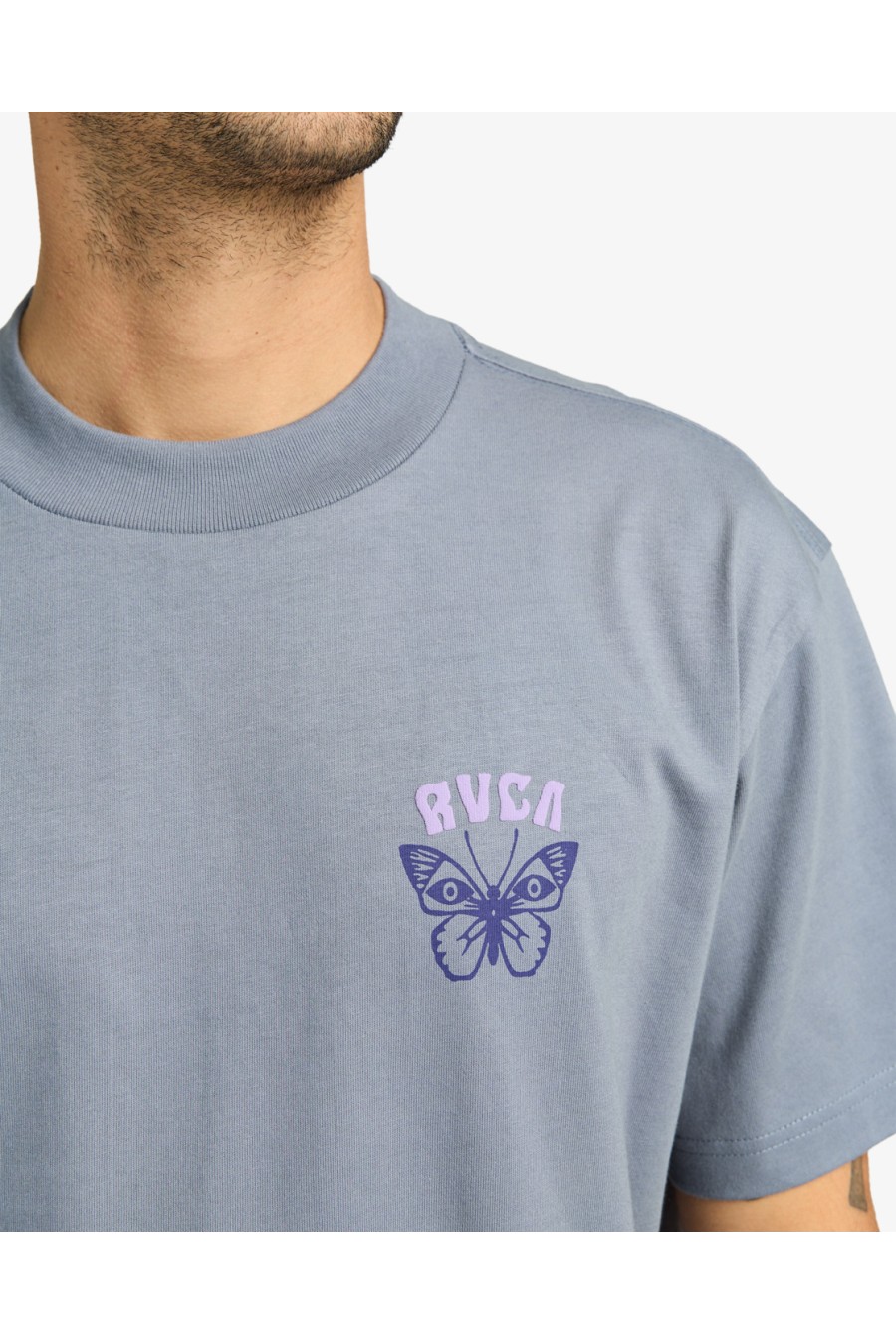 Camiseta de manga corta Rvca Butterfly Poster en color flint stone, con logotipos en parte delantera serigrafiada y espalda (tinta en relieve). Camiseta de alto gramaje con corte Relajado, cuello acanalado, redondo y 100% algodón orgánico. Nueva Colección Rvca Otoño 2025 ya disponible en Grado 90 Zaragoza.