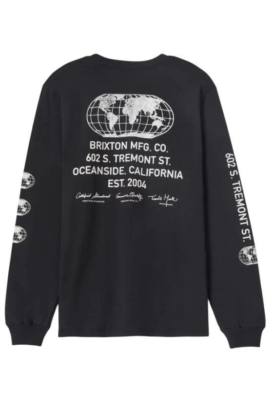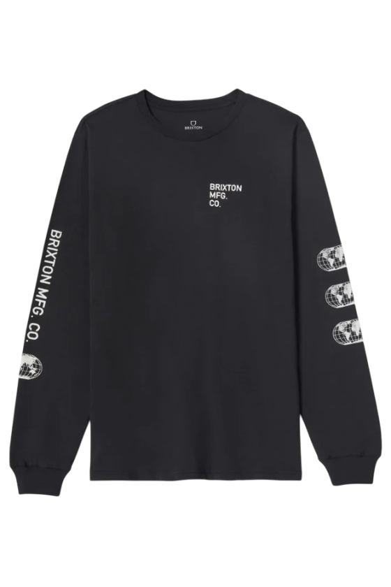 Camiseta Brixton de manga corta, modelo Union, con corte standard en color negra, camiseta cómoda de manga larga fabricada con algodón transpirable 100% con print en pecho, mangas y espalda en color blanco.