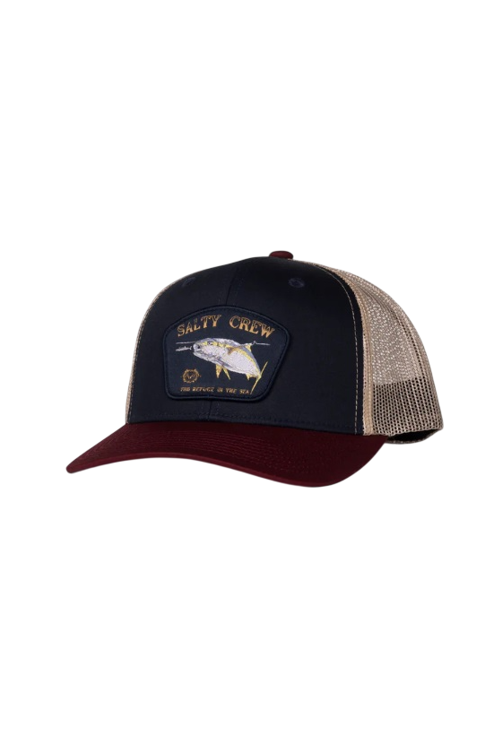 Gorra de visera curva en color Navy Red de Salty crew,el modelo Surface retro trucker viene con logotipo frontal. Una gorrita que no puede faltar en tu armario! Gorra Ajustable, snapback, con rejilla trasera estilo trucker. La nueva temporada Salty Crew ya esta disponible en Grado 90 Zaragoza.
