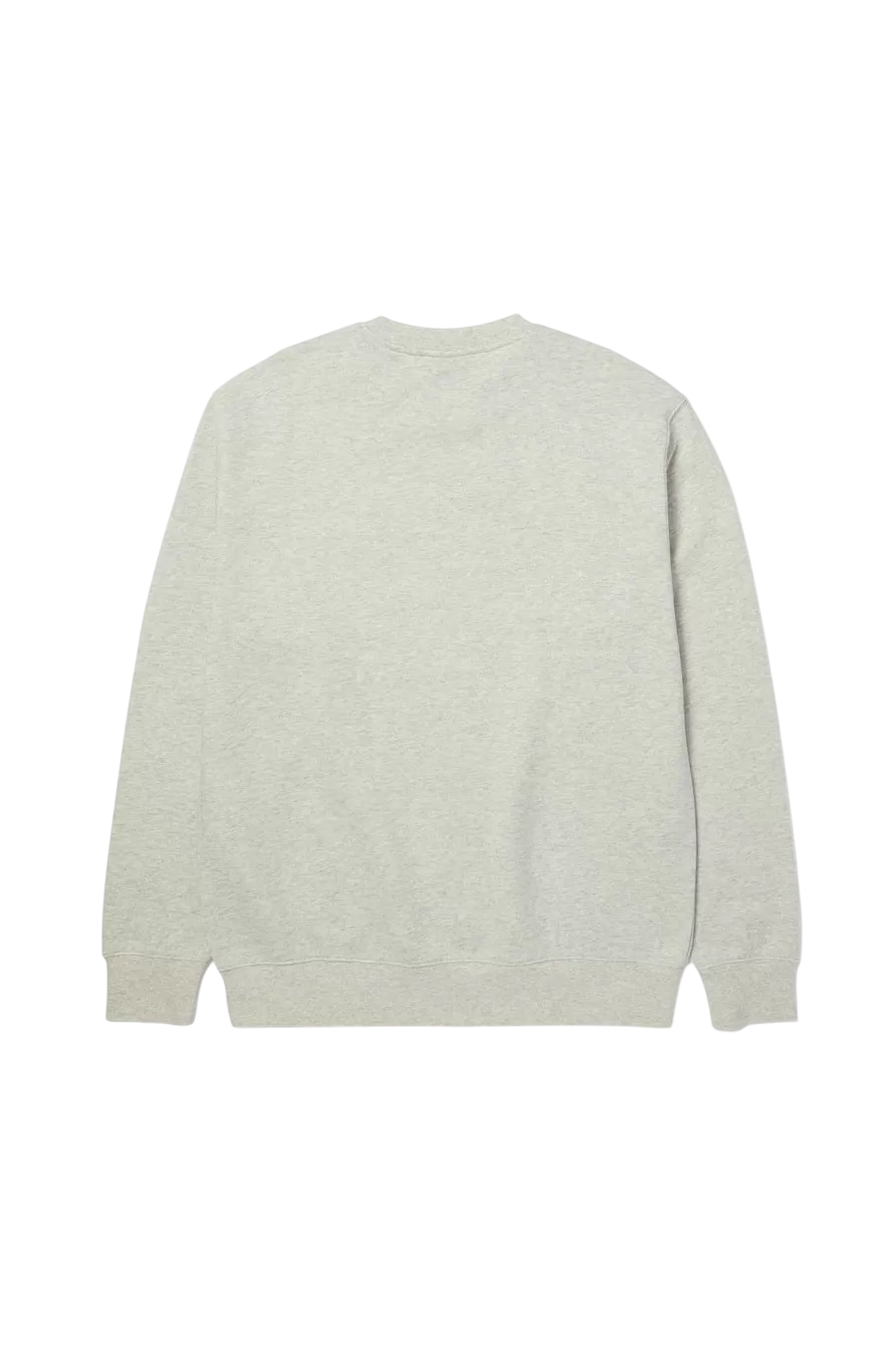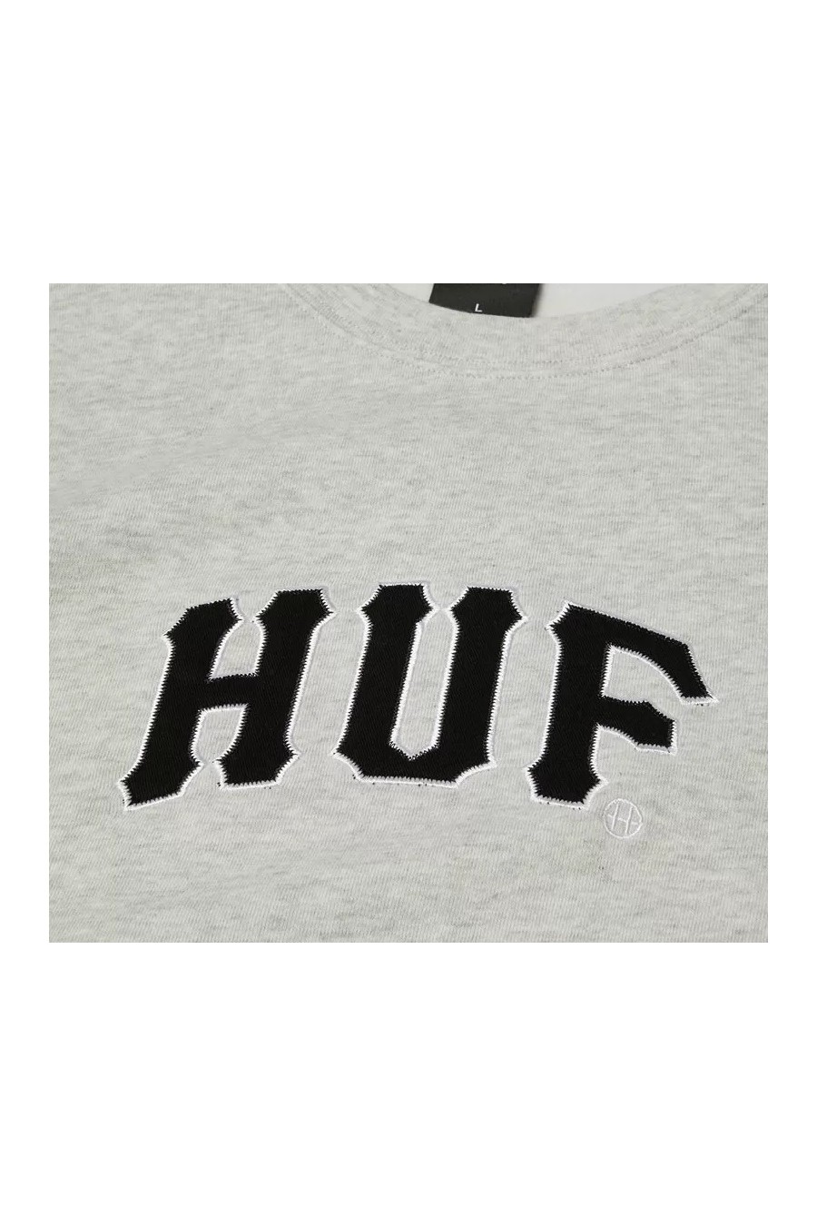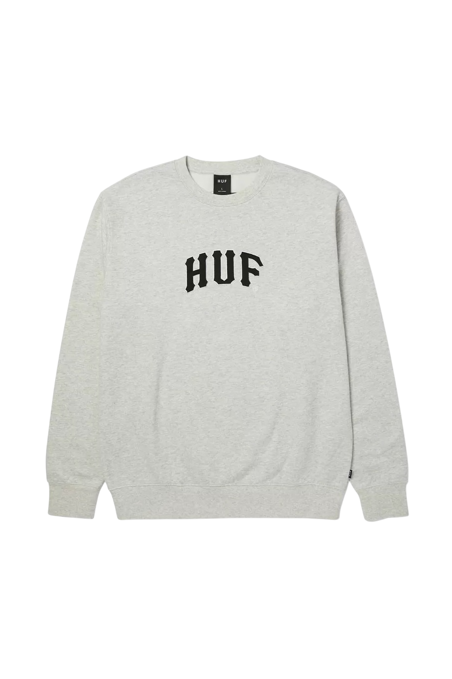 Sudadera sin capucha de Huf,  perteneciente a la nueva colección de la temporada otoño invierno 2025 color ash heather (gris jaspeado) con logotipo delantero central bordado y renovado en parte delantera de la marca. Fabricada en 80% Algodón, 20% Poliester.