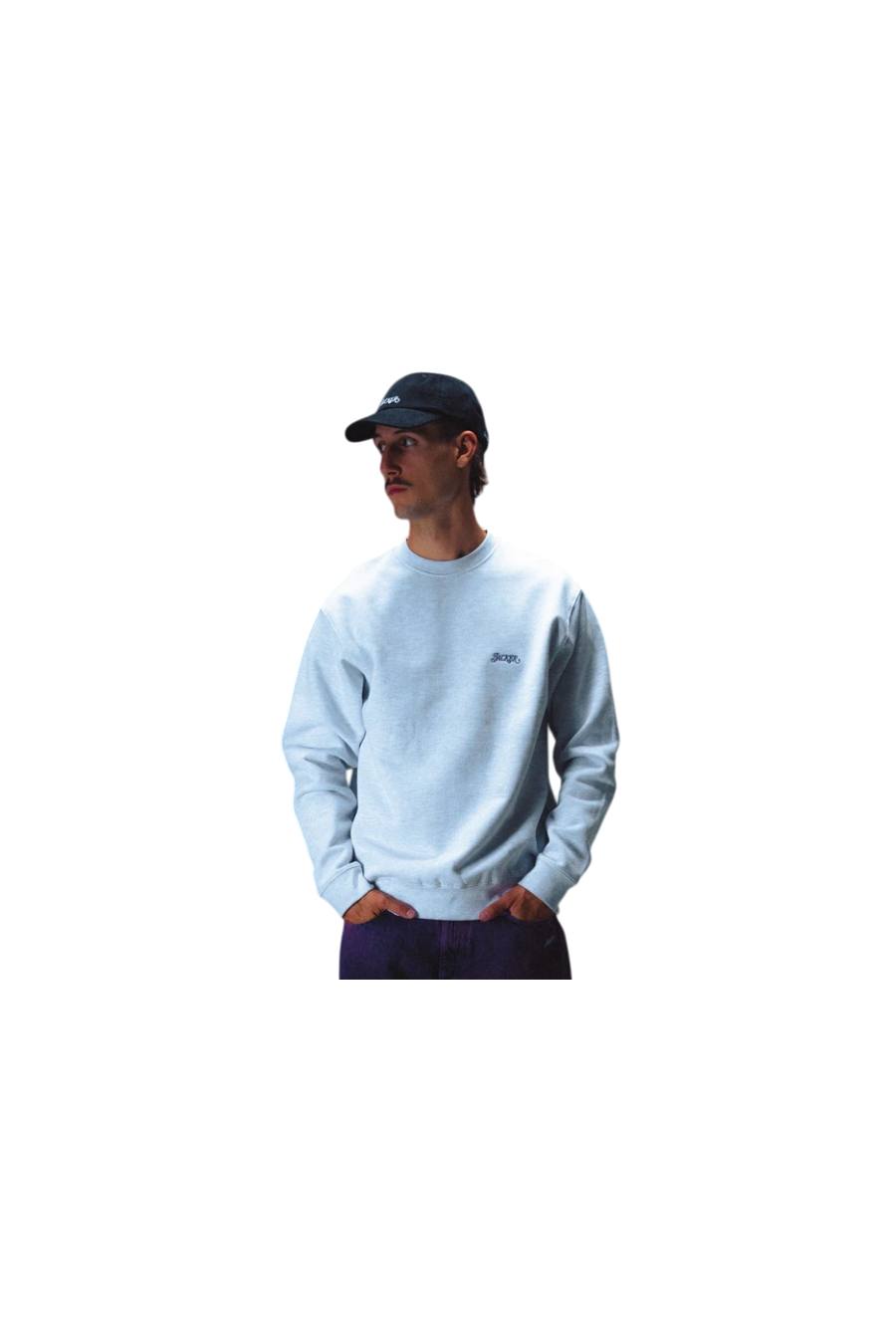 Sudadera Jacker sin capucha, modelo Classic Crewneck en color gris jaspeado con logotipo original en pecho bordado de Jacker en color morado, sudadera de alto gramaje fabricada en 100% algodón premium. La nueva colección otoño invierno 2025 de Jacker ya está disponible en grado 90 Zaragoza.