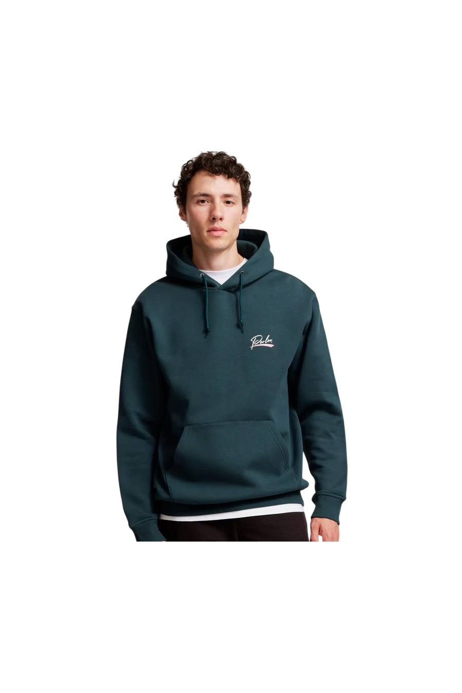 Sudadera con capucha de Rvca, con logotipo frontal centrado y en espalda (mezcla de print y bordado), con interior de forro cepillado, bolsillo delantero tipo canguro y capucha ajustable. Colección otoño invierno 2025 ya disponible de Rvca.