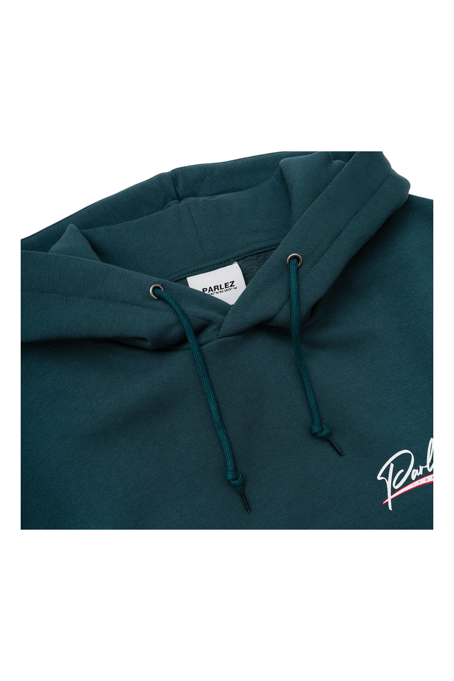 Sudadera Parlez Chisel, esta sudadera de tacto suave y tejidos premium trae capucha ajustable, bolsillo delantero tipo canguro y print en pecho y espalda. Color Petrol. Nueva Colección Parlez en Grado 90.